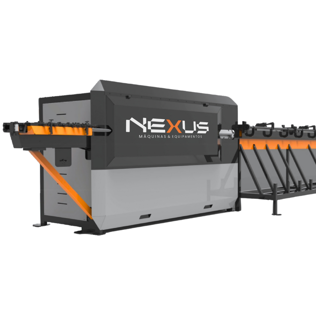 Endireitadeira Automática de alta velocidade por roldanas, para a produção barras cortadas sob medida, sem torcer o fio, utilizando aço CA50/60 em bobina com diâmetro de até ø12,7mm. Sistema de arraste e corte por servomotores e com programação total através de painel CLP.